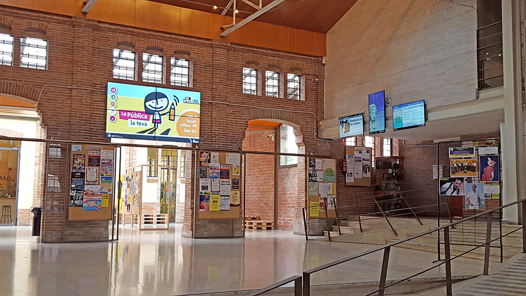 The reference municipal sociocultural and sports center in the city of Sant Boi de Llobregat, Can Massallera, I wanted to install a 2 video wall×2 and decided to entrust it to the company Konekto Graphic Communication.