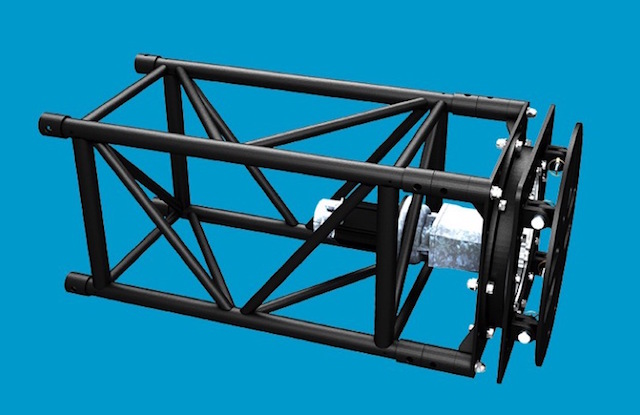 Las bases de piso independientes se han creado de una selección de truss que WIcreations normalmente tiene disponible el mercado de alquiler, combinadas con adaptadores especiales, pies que los sujetan y uno de los elementos rotatorios montado en la base.