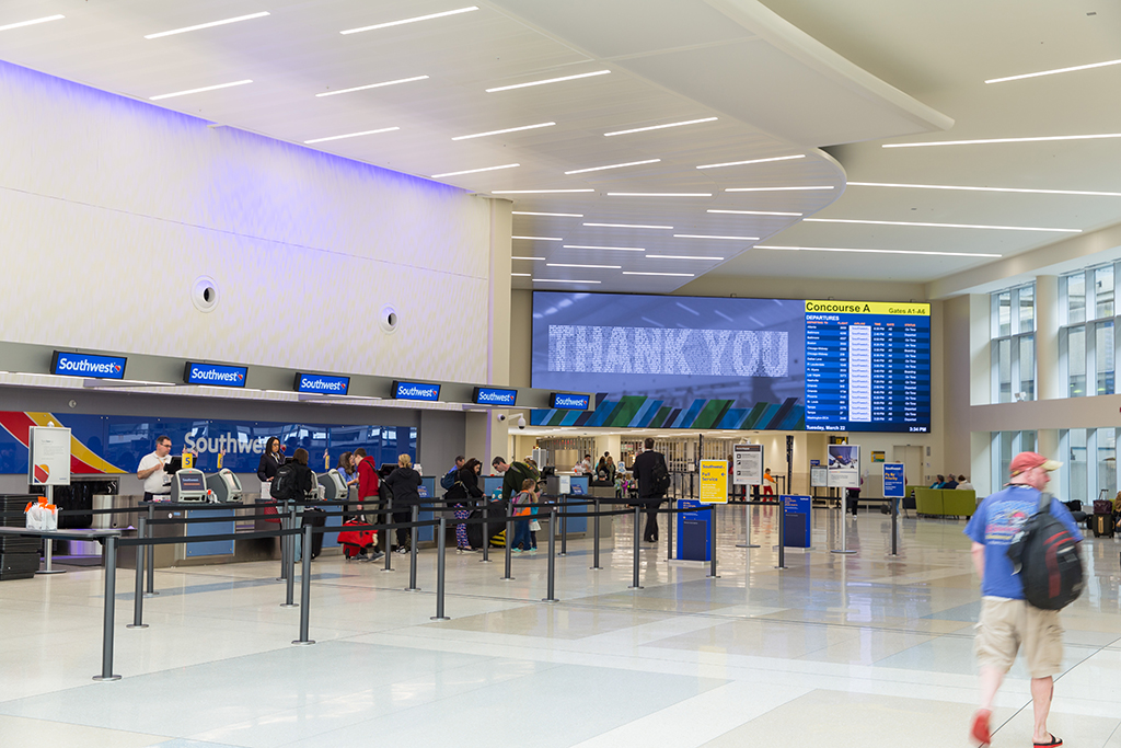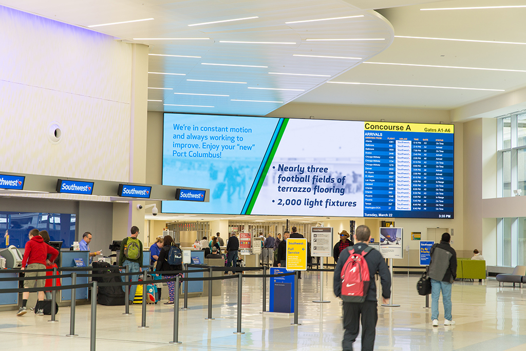 Operado por Columbus Regional Airport Authority, este aeropuerto tuvo una gran renovación en 2013 y como parte de este proyecto se incluyó la ampliación de su red de señalización digital con objeto de mejorar la experiencia y comunicación con el cliente. In this way, se añadieron más videowalls y soluciones de visualización en los mostradores. Esta ampliación se ha ido extendiendo durante los últimos tres años hasta que en marzo de este año se han instalado dos videowalls Led, con una unas dimensiones 13,4×4,2 metros, en las entradas de los terminales A y C, y 62 nuevas pantallas en los mostradores.