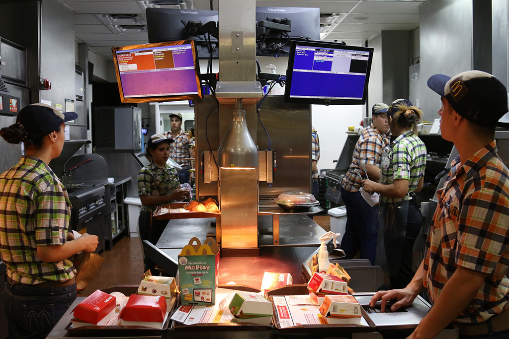 Entre los diferentes factores necesarios para hacer realidad el proyecto de las cocinas Made for You, el equipo de operaciones decidió instalar varios monitores en las líneas de producción de diferentes tamaños y diseños, en lugares estratégicos para que los empleados que realizan los pedidos tuvieran una buena visibilidad.
