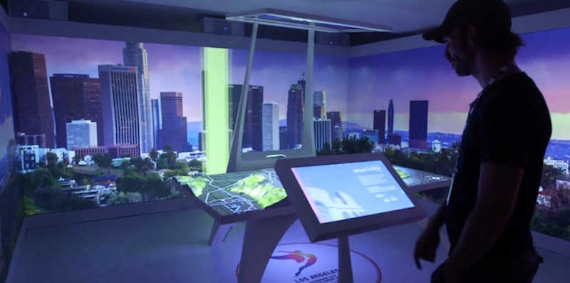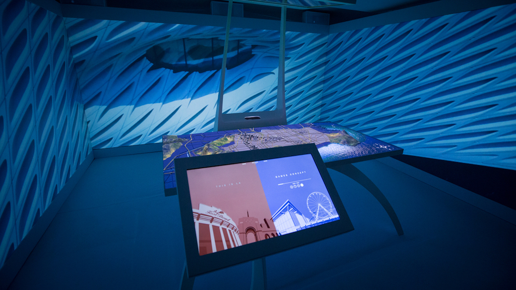 La información aparece proyectada en edificios y la geografía de Los Ángeles sobre una gran maqueta a escala mediante una técnica de proyección de mapping 3D. A su vez las paredes de este espacio interactivo se dinamizan con proyecciones gigantes en resolución 6K y la experiencia se complementa con sonido envolvente 5.1.