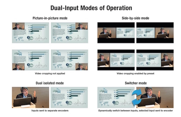 Simple to configure and integrate into any video control system, This network device allows you to define profiles for live and recorded classes or conferences, as it mixes camera images and presentation material from HDMI and SDI sources.