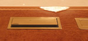 El sistema de conferencias MCS-D 200 con cable cuenta con 41 unidades de micrófono integradas, que se pueden personalizar y que se ocultan cuando no se necesitan en la propia mesa de reuniones.