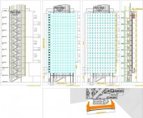 Cada una de sus barras horizontales tiene un ángulo de inclinación concreto, para evitar la contaminación lumínica en el espacio aéreo y en el ecosistema de la isla, y los cabinets son irregulares para permitir la sujeción de las ménsulas que sujetan el muro cortina.