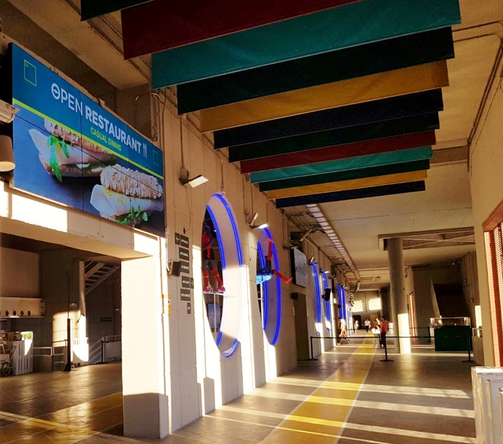 This theme park is equipped with a complete viewing infrastructure made up of video walls, totems, monitors for signage and indoor video scoreboards, as well as outdoor Led screens. A project that has been launched by Charmex, Samsung and Eikonos to offer experiences and entertainment associated with sports.