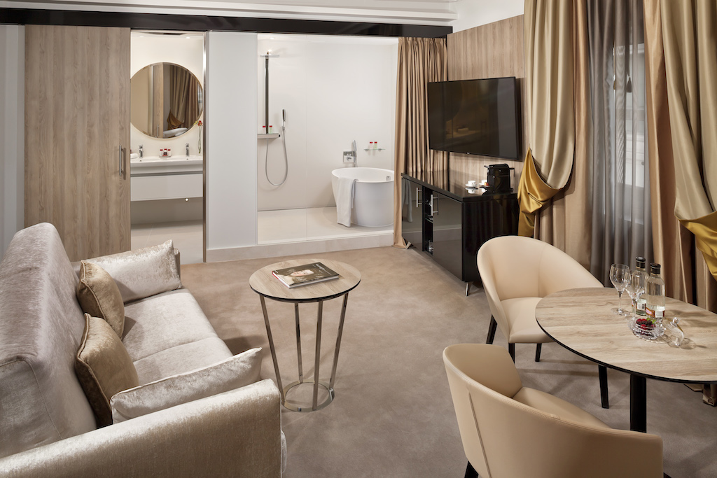 Para su montaje e instalación, también se han suministrado soportes a medida fijados en el suelo del especialista Vogel’s, junto con un sistema de sonido integrado que permite al huésped disfrutar y relajarse tanto en la habitación como en el baño. A ello se suma también el despliegue de dispositivos en las habitaciones para que el huésped pueda conectar sus dispositivos personales directamente o de forma inalámbrica para disfrutar de sus propios contenidos en la televisión del hotel.