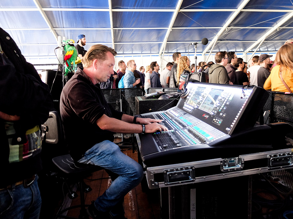“In a mix that involves dozens of channels, including three drum kits, The enormous dynamic range and clarity that dLive offers is greatly appreciated. The flexible channel layout allows me to place all my audio subgroups in the center bank with the DCAs below. I also like to use the De-Esser to help dilute the reach of the triple drum kit on the vocal mic.. Networking options give me a lot of freedom as they allow me to, For example, use the Waves SoundGrid for bus processing and the MADI for routing splits”, comments the systems and FOH engineer, Hugo Scholten.