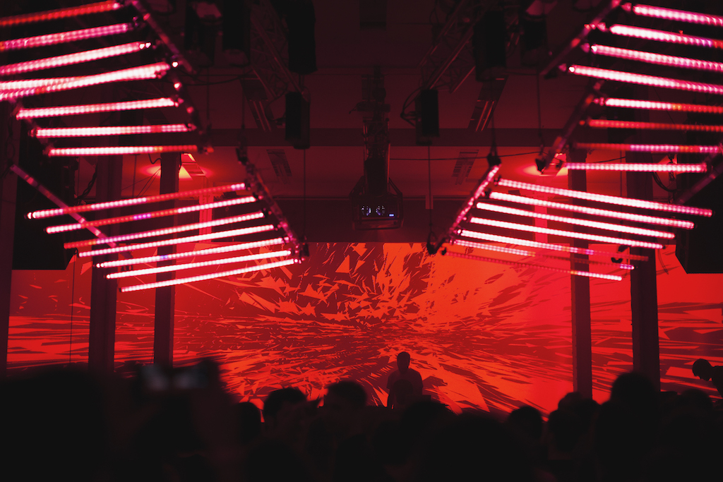 The third installation of the creativity studio adidas NMD Room by PlayModes is 'Cluster', an immersive audiovisual installation adapted to one of the Fabra i Coats rooms. The installation geometrically schematizes the space using lighting instruments that generate an audiovisual discourse in real time., transforming it into something abstract through light and sound.
