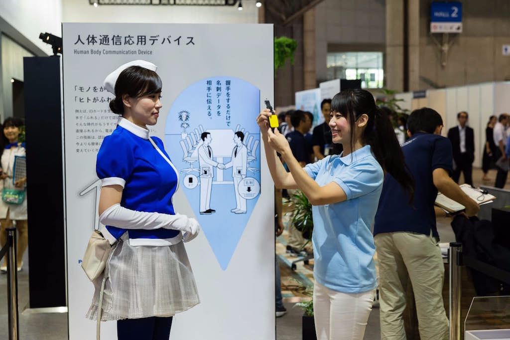 Crear una red inalámbrica de sensores para transmitir información y datos privados desde nuestro cuerpo a otras personas con sólo un apretón de manos es la futurista tecnología que el fabricante ha mostrado en Ceatec Japón 2016 con este prototipo que utiliza la tecnología de comunicación de campo eléctrico.