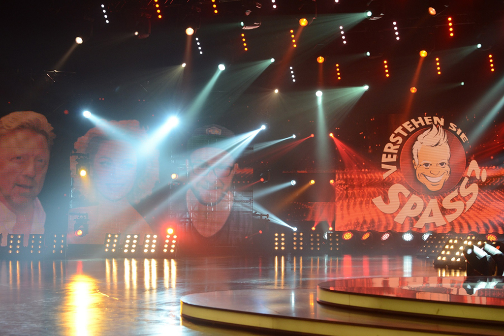 El diseñador para televisión Thomas Gerdon ha utilizado 44 appliances Elation Professional, that distributes Visualsvisuals, para iluminar el programa Verstehen Sie Spass, que desde 1980 se retransmite en el canal ARD de Alemania cuatro veces al año y cuenta con invitados conocidos y actuaciones musicales en su formato de ‘cámara oculta’ con famosos.
