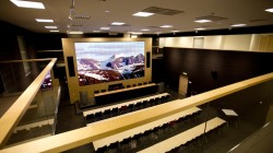 Para este proyecto AV se ha apostado por los cubos modulares de visualización digital de Christie para configurar la pared de vídeo de 7×4 que se ha montado en forma de rectángulo en el muro más cercano y visible desde la entrada. Además, ha instalado cinco paneles planos LCD FHD651-P de 65 pulgadas en distintas salas de reuniones de clientes.