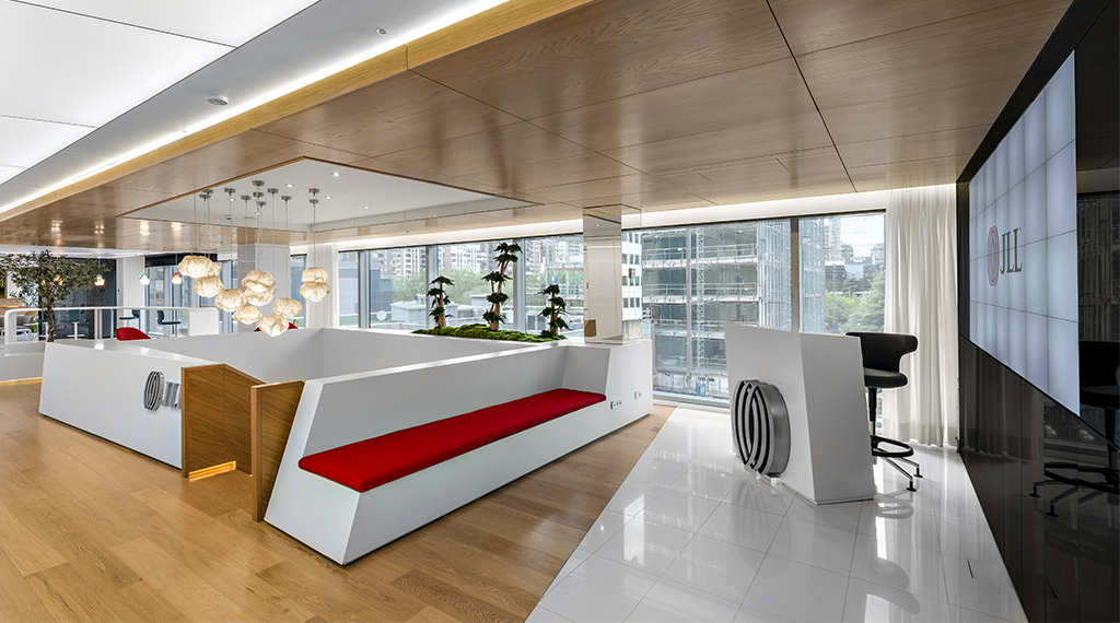 Cuando la empresa de servicios profesionales y gestión de inversiones especializada en el sector inmobiliario JLL decidió trasladar su sede corporativa en Madrid al Paseo de la Castellana, la compañía quiso dotarla en un estilo vanguardista que incluyera impactantes soluciones visuales.