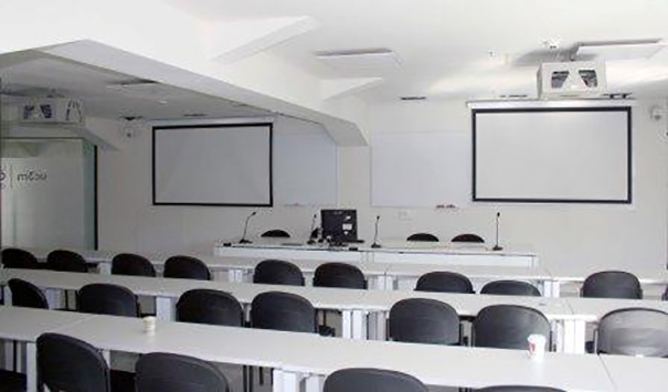 El último ha sido el de Madrid-Puerta Toledo en el que se ha incrementando el número de aulas y se las ha dotado de un completo equipamiento AV, integrado por un doble sistema de proyección HD de alta luminosidad y bajo ruido, preparado para trabajar con entradas analógicas y digitales, y pantallas motorizadas de gran formato.