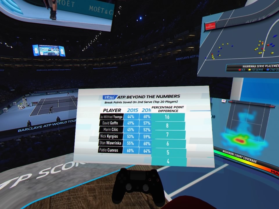 The collaboration between ATP, ATP Media, Infosys (socio de servicios tecnológicos globales de ATP World Tour) y Sony Professional Solutions Europe ha dado como resultado que los visitantes de la fan zone del O2 Arena de Londres vivieran en primera persona y en primicia mundial las finales de tenis Barclays ATP World Tour de una manera única en visualización y dimensión dentro de los puestos interactivos de PlayStation VR.