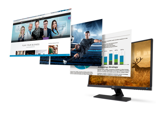 Para dar respuesta a estas funcionalidades, este monitor de BenQ incorpora las tecnologías Low Blue Light y Flicker-free. La primera se encarga de filtrar la radiación azul violeta (420-455 nm) y hace que permanezca la azul (450-480 nm). La segunda elimina los parpadeos de la pantalla en todos los niveles de brillo para reducir la fatiga ocular. Debido a que el monitor tiene una fuente constante constante de luz, es idónea para aquellos que buscan un mayor confort visual.