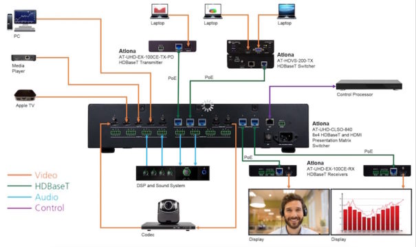Steve Kolta, responsable de productos en Atlona, explica que “CLSO-840 es nuestra respuesta a muchas peticiones de nuestros socios e integradores para crear una potente matriz 4K y de cuatro salidas, necesaria para realizar videoconferencias y aprendizaje a distancia. Al mismo tiempo hemos creado sistemas de matriz de vídeo complejos que son fáciles de usar y que funcionan con nuestras series HDVS-200 y UHD-EX que permite la conmutación de entradas remotas y la extensión de HDBaseT”.
