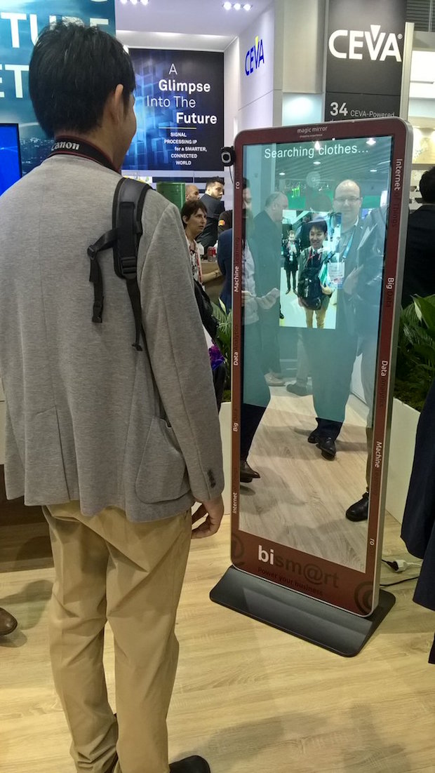 El sistema Magic Mirror de Bismart es un personal shopper programado en el espejo de la tienda que, previo escaneo de la cara, recomienda al cliente la prenda que mejor le sienta. Este espejo mágico que la compañía muestra en MWC 2017 en Barcelona responde a la demanda del mercado en busca de patrones de comportamiento, ocultos en los datos, para descubrir nuevos segmentos de clientes, identificar comportamientos de compra e incluso evitar accidentes.