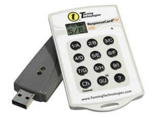Este sistema desarrollado por Turning Technologies, que comercializa en el mercado español Led Visual, funciona por radiofrecuencia y está especialmente indicado para su uso en presentaciones en salas pequeñas y medianas, así como en grandes auditorios, ya que tiene un alcance de 60 metros y capacidad para mil tarjetas (mandos de votación interactiva, que pueden ampliarse).