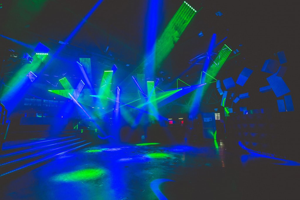 Este establecimiento pone una especial atención en el diseño de iluminación y sonido para ofrecer efectos láser, pyrotechnics, cañones de Co2 y confeti, proporcionando un gran impacto visual a todos sus eventos. With this objective, en la pista de bailes se han instalado 16 cabezas móviles híbridas Elation Platinum HFX y 20 ACL effects 360 Bar.