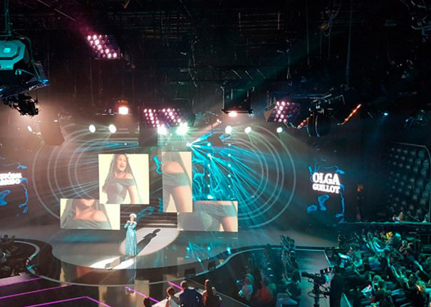 Para este nuevo talent show se ha diseñado un escenario integrado por 11 soportes de visualización. En el fondo se localizan nueve tótems verticales configurados con la pantalla Barco ILite XP de 6 mm. Siete de ellos son de 16 tiles, con unas dimensiones de 0,90×3,58 metros, y dos de 22 tiles, con unas dimensiones de 4,93×0,90 metros totalmente integrados.