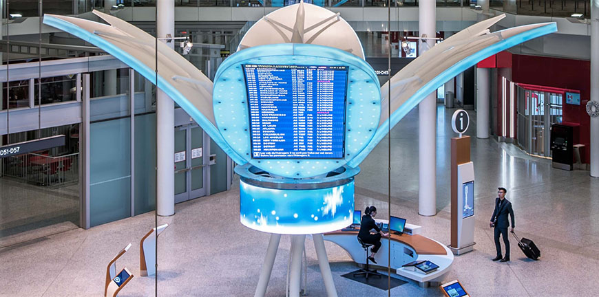 Una espectacular arquitectura visual informa a los pasajeros en el aeropuerto de Toronto Pearson