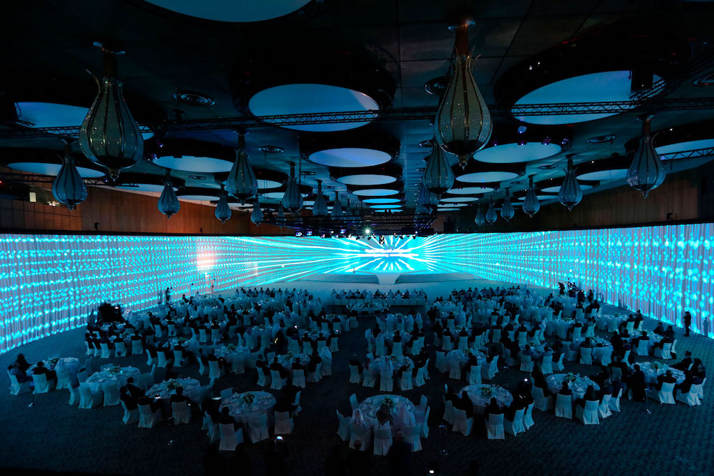 For this event, que congregó a unos cuatrocientos invitados, entre los que se encontraban el emir de Qatar y el jeque Tamim bin Hamad Al-Thani, máximo representante gubernamental del país, among other authorities, APD realizó el diseño del proyecto, que abarcó desde la escenografía, puesta en escena e iluminación, hasta la dirección artística, creación y producción de todos los contenidos audiovisuales, así como el suministro del equipamiento audiovisual.