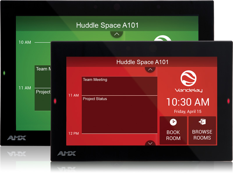 Los paneles táctiles AMX Acendo Book, in sizes 7 y 10,1 inches, son independientes para la realización de reservas y se integran directamente con los sistemas de gestión de calendarios más utilizados, como Microsoft Exchange, Office 365 y Google Calendar, sin necesidad de añadir más hardware.