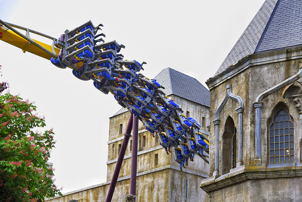 Dentro del área de los superhéroes de Parque Warner, Batman: Arkham Asylum es una montaña rusa de 780 metros de recorrido con cinco inversiones a 80 kilómetros por hora que disfrutan 28 personas en cada viaje.