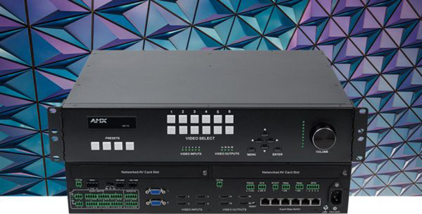 - Integrated Networked AV slots and Gigabit Ethernet switch: Distribute video in large venues using Networked AV technology, whose slots are designed to support existing AMX encoder and decoder cards.