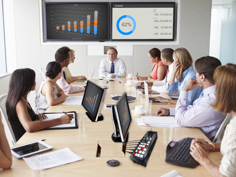 Esta versátil y compacta solución con soporte Full HD, es idónea para producciones de empresa, organizaciones religiosas y alquiler de equipos, con aplicación en salones de banquetes, pavilions, teatros o estudios de e-learning que usen múltiples destinos para mostrar vídeo.