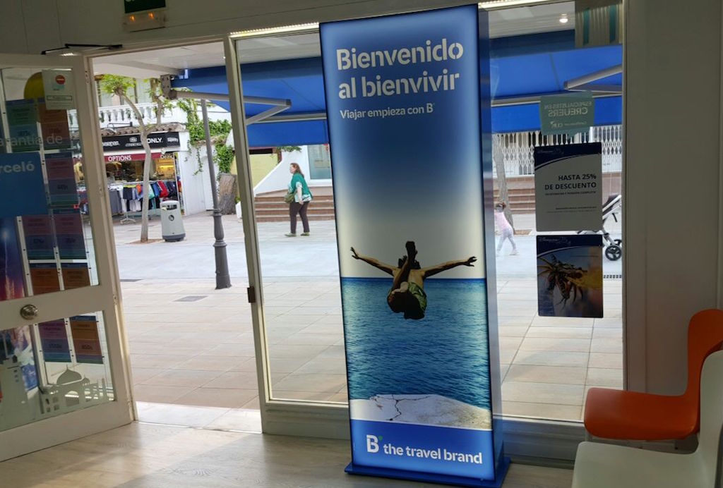 La agencia de viajes B the travel brand, belonging to Grupo Barceló y con una red compuesta por más de setecientos establecimientos distribuidos por España, ha decidido apostar por la comunicación digital dinámica multimedia en más de cuatrocientas tiendas de su red, con la instalación de pantallas digitales profesionales de gran formato y brillo, así como tótems personalizados con su imagen de marca, que los usuarios pueden visualizar desde el exterior.