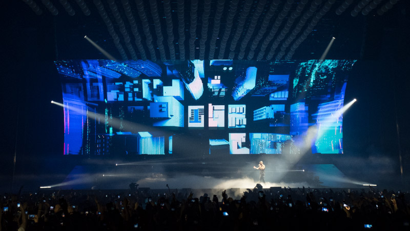 Steve Kidd, diseñador y director de la gira, junto con Guy Pavelo, diseñador y director de iluminación, han trabajado estrechamente con Drake durante más de cinco años para la puesta en escena de sus conciertos, en los que utilizan equipos del proveedor de tecnología para eventos PRG XL Video.