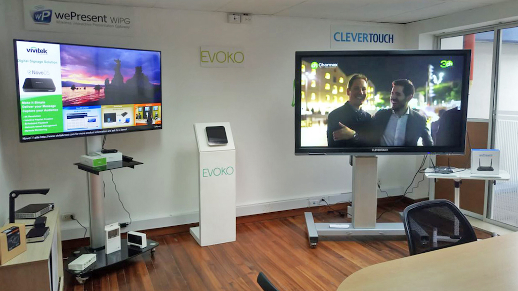 El showroom incluye los monitores interactivos Clevertouch, in sizes 65 y 75”, que están presentes en muchas instalaciones de este país; el aula digital con pizarra interactiva Trauboard de 89” y el proyector Vivitek de ultra corta distancia. A ello se suma el sistema de reserva de salas corporativas; soluciones de cartelería digital integradas para entornos corporativos y educativos, así como las de colaboración de Vivitek y WePresent.