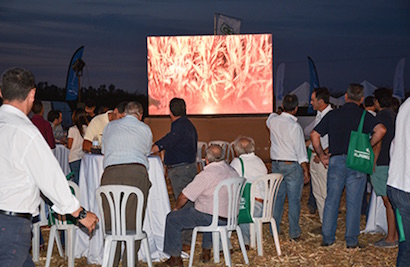 La finca Comendadores de La Rinconada (Sevilla) ha sido el marco para celebrar el primer fórum de maíz a cosecha nocturna en la historia de DuPont Pioneer España, que ha contado con la asistencia de más de 250 agricultores de municipios cercanos, que pudieron seguir la labor en el campo de cultivo a través de una gran pantalla Led instalada en el recinto exterior acotado para este fin.