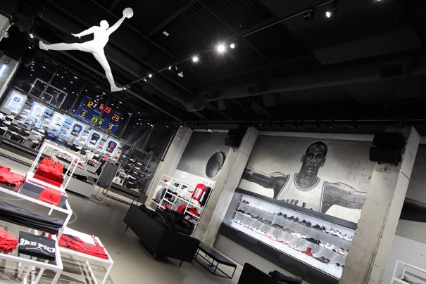 The new Air Jordan store in Toronto has been designed to offer customers a complete digital experience. This three-level commercial space is equipped with an underground area just for children, an industrially designed retail facility and upper level athletic training facility.