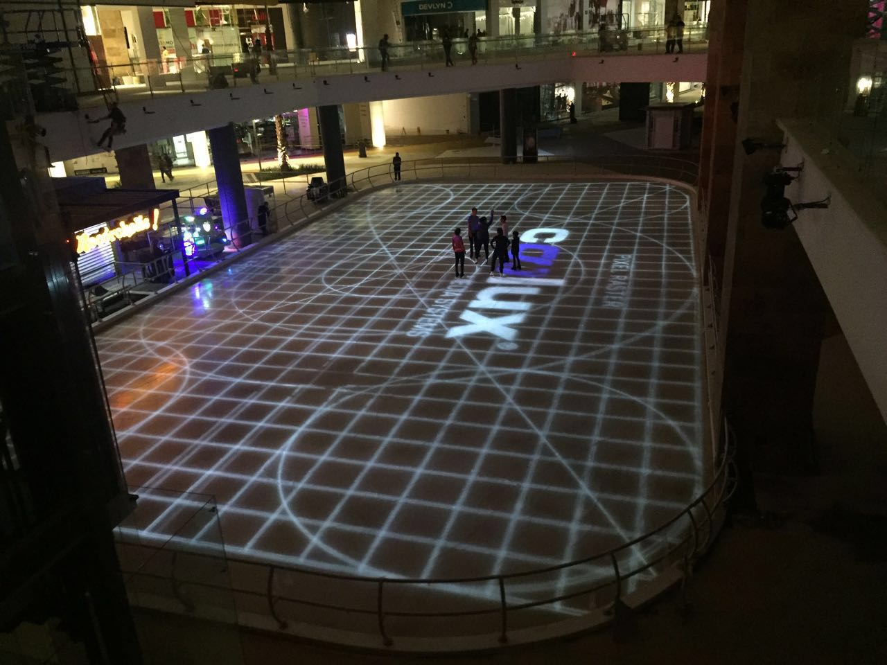 El centro comercial Mundo E instala un mapping proyectado sobre una pista de hielo