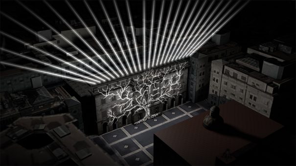 In the mapping, which will last about ten minutes and will have a voice-over to contextualize the projection, the tree is growing with branches, twigs, leaves and fruits full of symbology. Each fruit projects a light that points towards the sky and invites the public to look upward without fear., without complexes, and so, by extension, It becomes a ray of light that can be seen from all parts of the city.