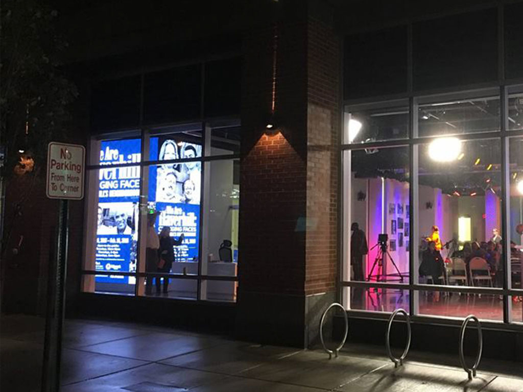 Con su nuevo Studio 101, ubicado en el centro de la ciudad en el edificio Harbor Place, HC Media quería crear una cautivadora exhibición visual que entusiasmaría a toda la comunidad e iluminaría el revitalizado distrito del centro. Al trabajar con Fishbrook Design Studio, la pantalla digital necesitaba ser brillante, con una capacidad de diseño de 90 degrees, por lo que eligieron el modelo Lede FLEXLite NXG de 3,9 mm PixelFLEX.