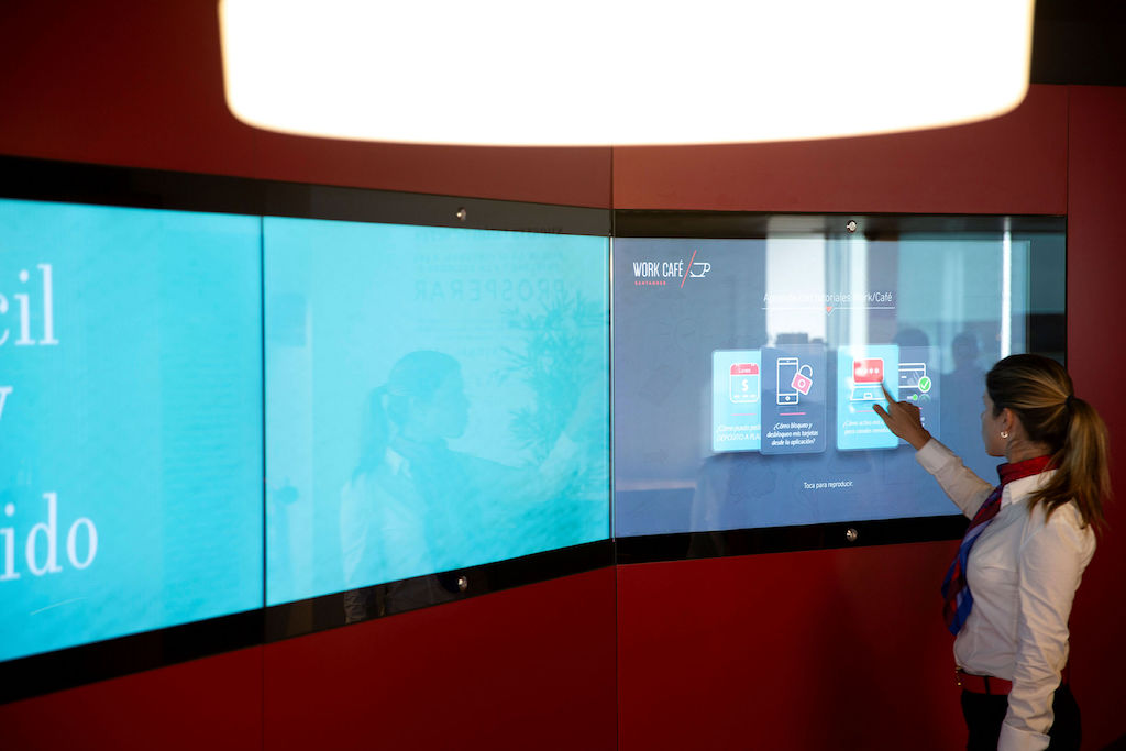 GrupoSantander encargó a PX Group la creación del Work/Café, “un concepto innovador que lleva al cliente en un viaje tecnológico por el banco”. Anneliese Schemke, directora de ventas e innovación esta compañía recuerda que “con más de quince años de experiencia en el diseño e innovación en retail, vimos en Work/Café un desafío perfecto para transformar una típica sucursal bancaria en algo disruptivo. La tecnología táctil suponía un elemento muy importante en nuestro concepto y colaboramos con Zytronic para ofrecer una tablet interactiva que ofreciera a nuestros clientes la experiencia que esperaban”.