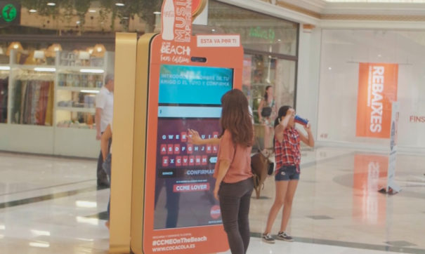 A través del circuito de soportes de iWall que tiene instalado en centros comerciales, Coca-Cola ha presenta una acción conjunta con Posterscope con la comercialización de Publiespaña, que permite al target teen, un público muy dispuesto a participar en acciones interactivas y personalizadas, personalizar con su nombre el cartel del Coca-Cola Music Experience y compartirlo al momento.