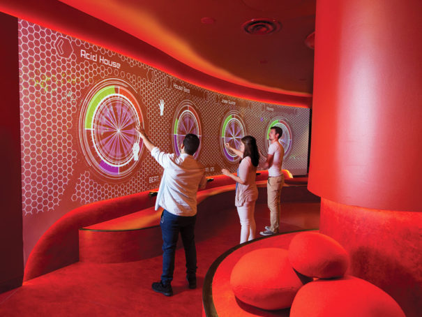La Zona Roja está diseñada para proyectar visuales atractivos en las paredes y los techos, creando una experiencia de aprendizaje interactiva y atractiva. Para hacer realidad este concepto, el centro docente de Griffith contrató a Videopro, que ideó la configuración completa utilizando las soluciones de Harman Professional.