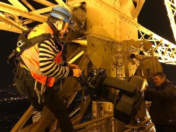 Técnicos alpinistas pasaron tres noches en la Torre Eiffel instalando estas multifuncionales luces con protección IP65, como ya han realizado otros equipos similares con estos sistemas en importante espectáculos de luz, como el de Fin de Año en el Burj Khalifa del Emirato de Dubai y en la norteamericana Space Needle en Seattle.