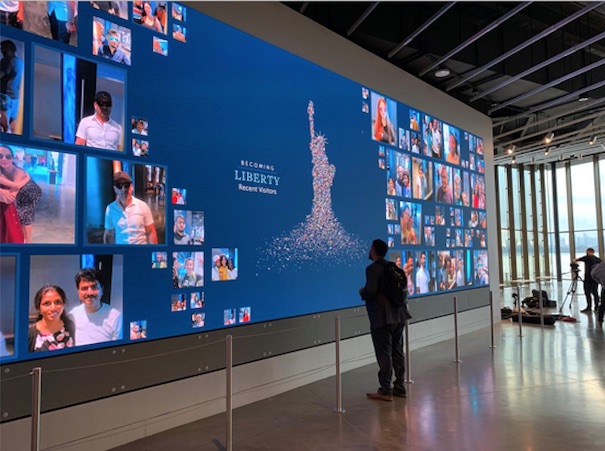 Lo que hace que esta gran pared visual sea más especial que otros videowall es que ofrece e involucra a los visitantes en una historia única y singularmente americana: todos los que aparecen en la pantalla podrían remontarse a una generación que pasó por Liberty Island alguna vez e, incluso estuvo en el cercano centro de procesamiento de inmigración de Ellis Island.