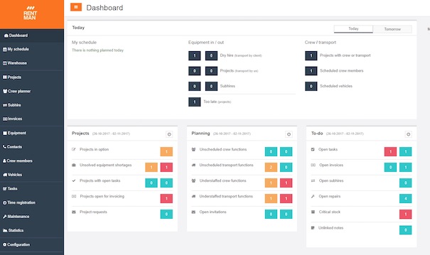 Rentman permite a las empresas de AV y de alquiler de eventos de todo el mundo gestionar su negocio de alquiler en un solo lugar, con gestión de proyectos, seguimiento de equipos, planificación de mano de obra, así como cotización y facturación.