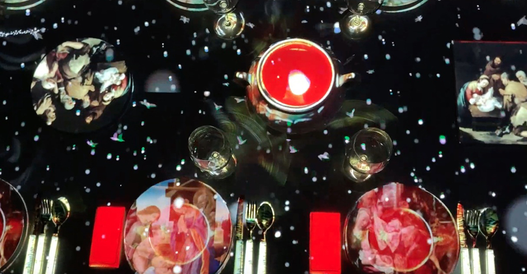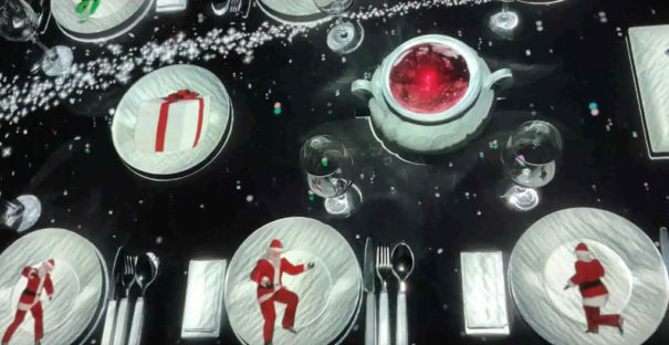 ‘Gastro-poema de Navidad’ es un espectáculo audiovisual donde los elementos sonoros, los olores y la proyección sobre la propia mesa son los pilares de un viaje que busca convertir una comida navideña en un relato onírico y fantástico.