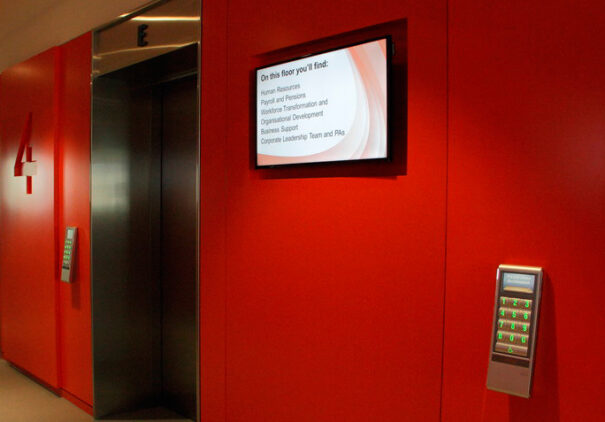 Dentro de las oficinas del personal, en Friargate, la plataforma se utiliza para encontrar indicaciones en los vestíbulos de los ascensores, como soporte en conferencias para mostrar contenido de los eventos, mensajes internos para el personal, visualización de datos en vivo, llamadas en espera del público, transmisión de TV en directo en las área de personal y salas de espera, promoción de eventos de caridad, entrega de contenido de capacitación y muchas otras cosas.
