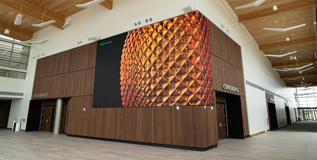 En el vestíbulo del centro de eventos Wingspan, envolviendo una esquina externa, se ha instalado un videowall Led Planar CarbonLight CLI de 10×4,8 metros, en configuración de 20×10 y un pixel pitch de 1,9 mm (CLI1,9).