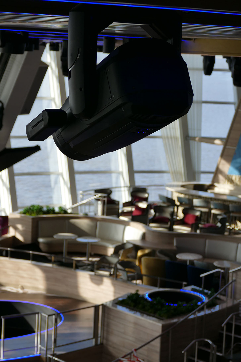 Tener los sistemas RoboSpot a bordo también fue música para los oídos de los diseñadores de teatro Wilson Butler Architects de Boston, quienes heredaron el diseño original del Odyssey Two70 y lo evolucionarán para futuros barcos.