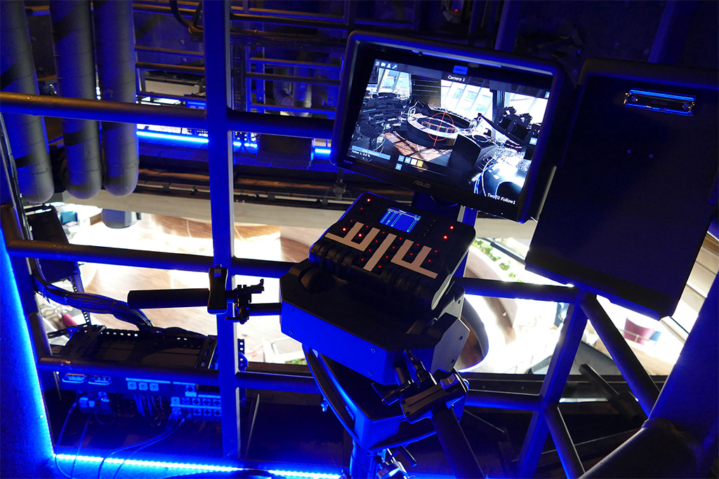 El sistema RoboSpot liberó un valioso espacio para la audiencia y llevó a los operadores tras el escenario, que en este caso está en la pasarela sobre el techo.