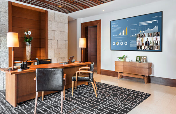 Se trata de una pantalla LCD 24×7 de calidad comercial de 100 pulgadas que permite mostrar contenido 4K HDR con alto brillo y un perfil de instalación delgado.
